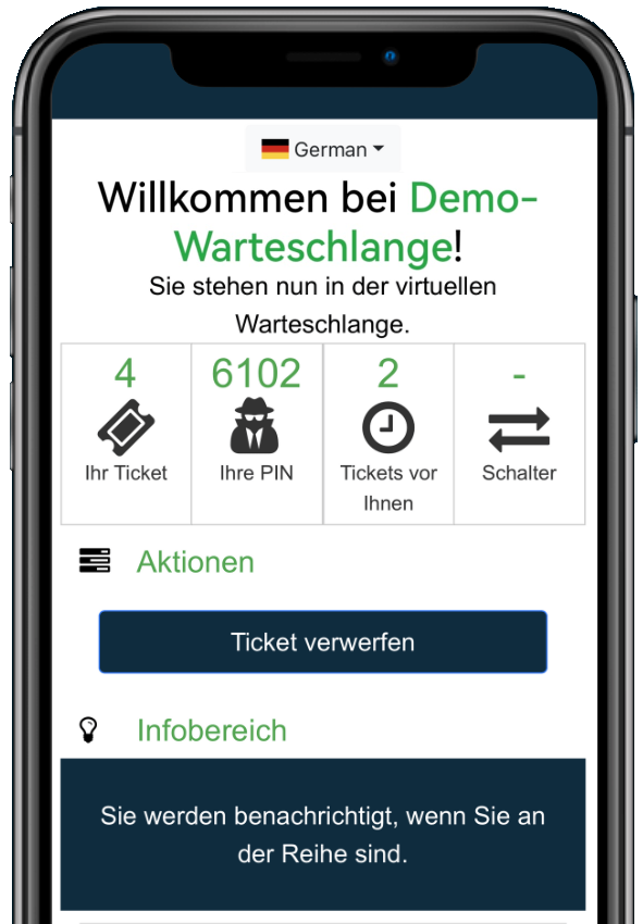 Wenn das Ticket aufgerufen wird, erscheint eine Benachrichtigung auf dem Smartphone des Besuchers.